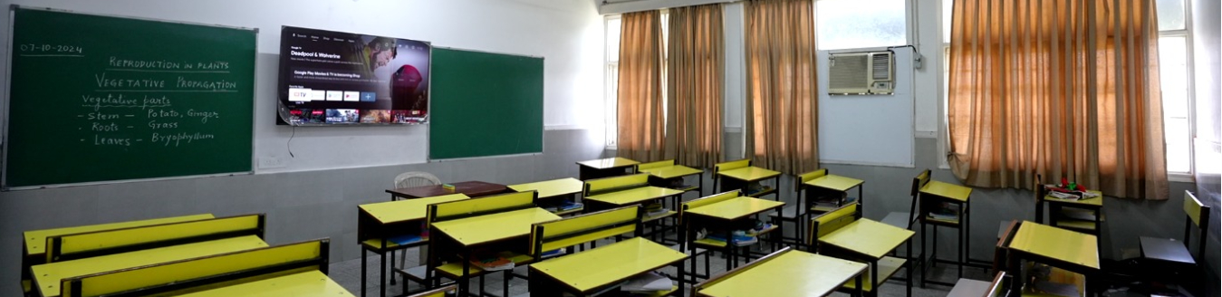We embrace innovative education through technology, with one Smart TV-enabled section in every grade, enabling interactive, multimedia-driven learning experiences. Each classroom is enriched with large creative display boards, well- placed whiteboards, and blackboards with smart storage, making lessons visually dynamic and organised.