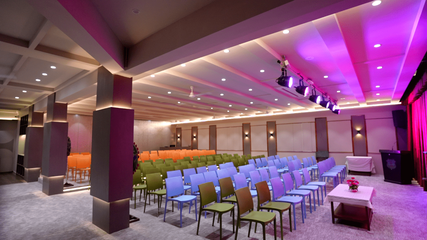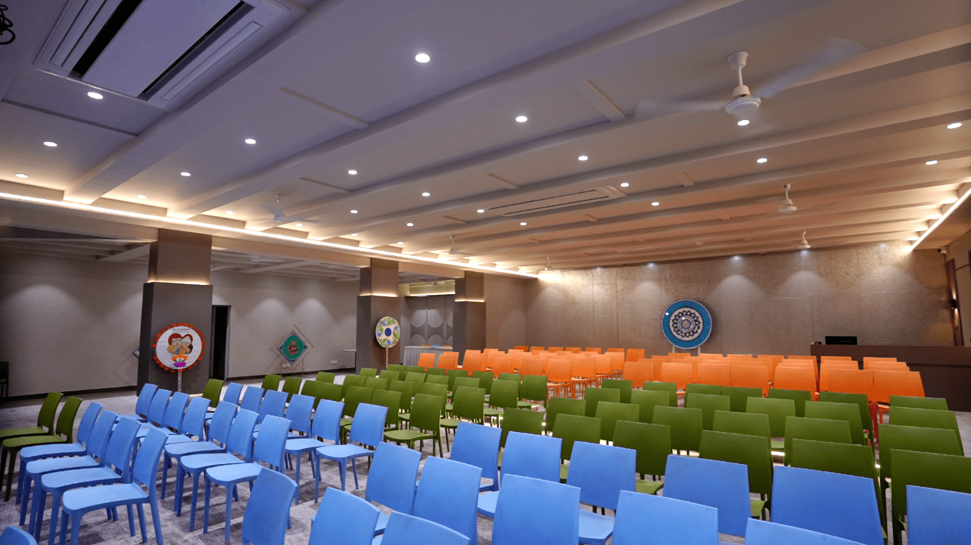 Fully equipped with a modern sound system, high-quality display screens, and facilities for customised professional backdrops, the Mandapam ensures seamless execution of assemblies, competitions, cultural programmes, workshops, seminars, orientations, and formal meetings. Its thoughtfully designed layout, combined with proper air ventilation and comfortable seating, creates a welcoming and conducive environment for meaningful interactions.